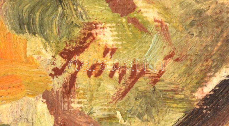 Leírás: Szőnyi jelzéssel: Folyópart háztetőkkel. Olaj, papír, 28×32 cm