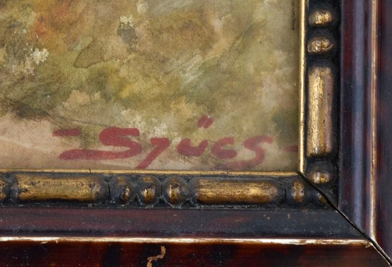 Leírás: Szűcs jelzéssel: Kőhíd. Akvarell, papír, üvegezett keretben, 24×32 cm
