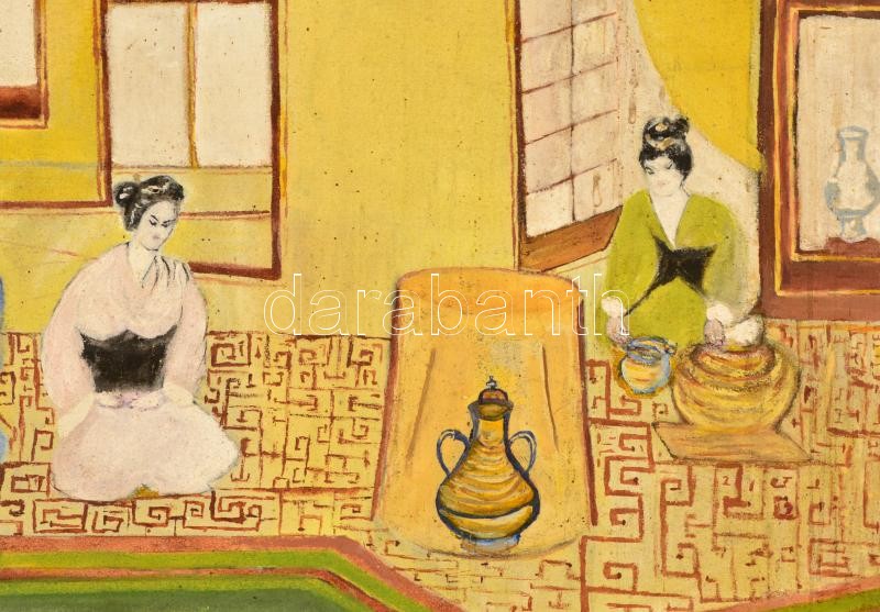 Leírás: Vörös jelzéssel: Gésák. Olaj, vászon, foltos, 52×71 cm