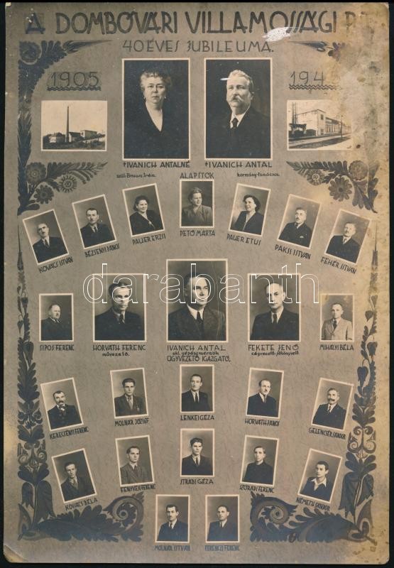Leírás: 1945 A Dombovári villamossági rt tablója az épület képével. Sérült. 15x22 cm