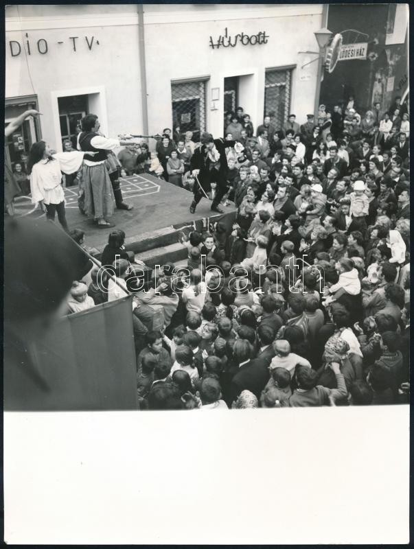 1975 Szentendrei játékok, utcai színpadi előadás, publikált fotó, 23×1... https://www.darabanth.com/hu/361-Gyorsarveres/361.0/Fotomuveszet/Foto~500023/1975-Szentendrei-jatekok-utcai-szinpadi-eloadas-publikalt-foto-23C39718-cm~II2082032