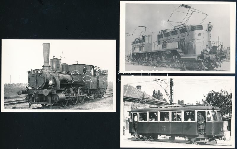 Régi mozdonyok, 3 db modern előhívás, 9×14 cm