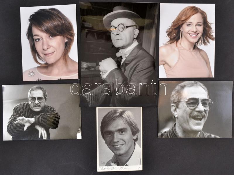 Vegyes színész fotó tétel, 6 db, közte Fullajtár Andrea (1973-) és Ónodi Eszter (1973-), Böröndi Tamás (1955-) dedikált fotói, valamint 2 db Nino Manfredi (1921-2004) fotói és 1 db azonosítatlan, 15x10 cm közötti méretben és 24x17 cm közötti méretben