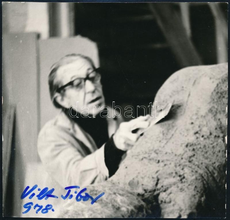 Leírás: Vilt Tibor (1905-1983) szobrász aláírt fotója 14,5x14,5 cm