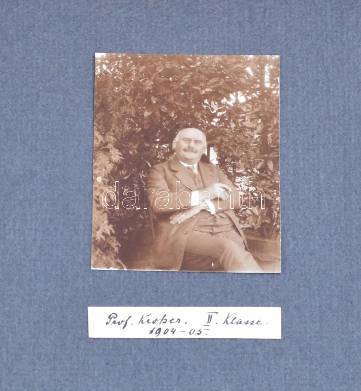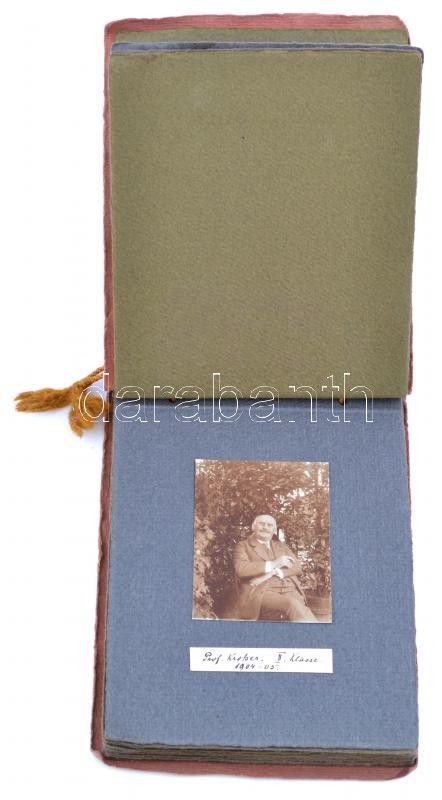cca 1900 Német középiskolai tanárok, professzorok nevesített fényképalbuma 18 db fénykép + egy aláírt kártya / Album of German school teachers, professors with names. 18 photos