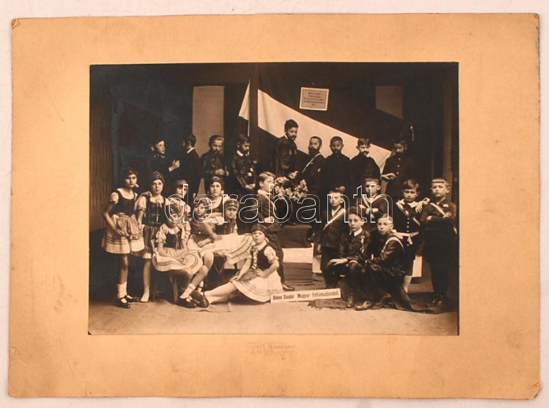 Leírás: cca 1925 Irredenta színpadi élőkép Szigeti székesfehérvári műterméből, 17x23 cm, karton 24x33 cm