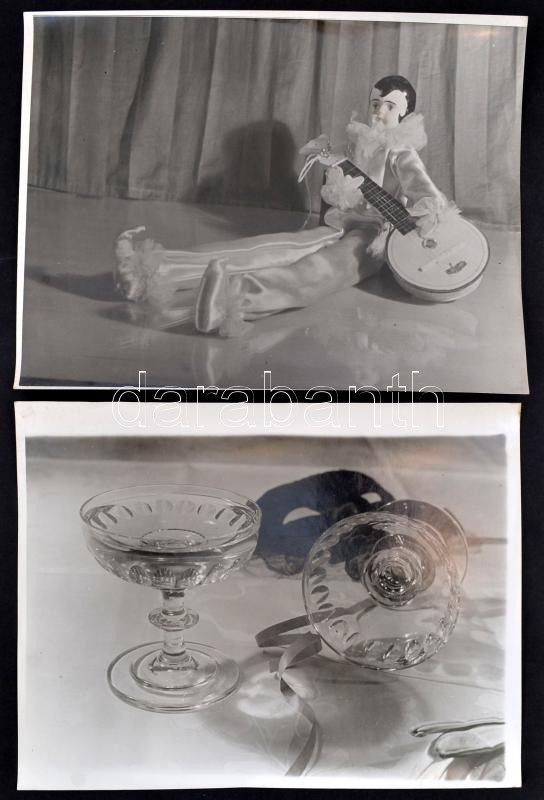 cca 1936 Pöltinger Gusztáv: Farsangi bálon, jelzés nélküli vintage fotóművészeti alkotás a szerző hagyatékából, 26x37 cm-es kép 30x40 cm-es fotópapíron + cca 1935 Pöltinger Gusztáv: Baba, jelzés nélküli vintage fotóművészeti alkotás, 30x40 cm
