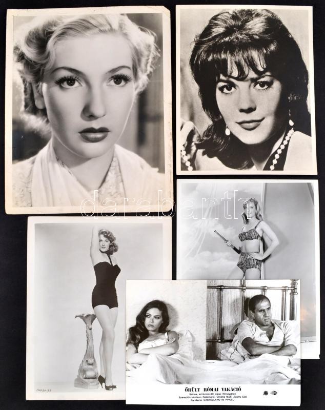 cca 1940-1980 Vegyes fotó tétel filmszínésznőkről, 10 db, Caroline Wells, Jeanne Moreau, Ornella Muti, Corinne Luchaire és mások, fotó, werkfotó, az egyik felületén törésnyomokkal, 30x24 cm és 24x18 cm közötti méretben