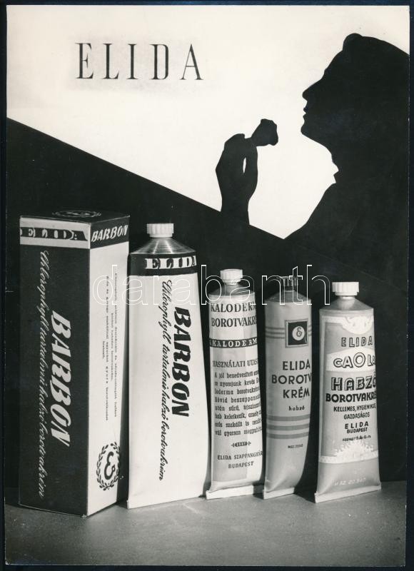 cca 1960 Dr. Csörgeő Tibor (1869-1968): Elida borotvahab reklám, pecsé... https://www.darabanth.com/hu/361-Gyorsarveres/361.0/Fotomuveszet/Foto~500023/cca-1960-Dr-Csorgeo-Tibor-1869-1968-Elida-borotvahab-reklam-pecsettel-jelzett-foto-24C39717~II2081850