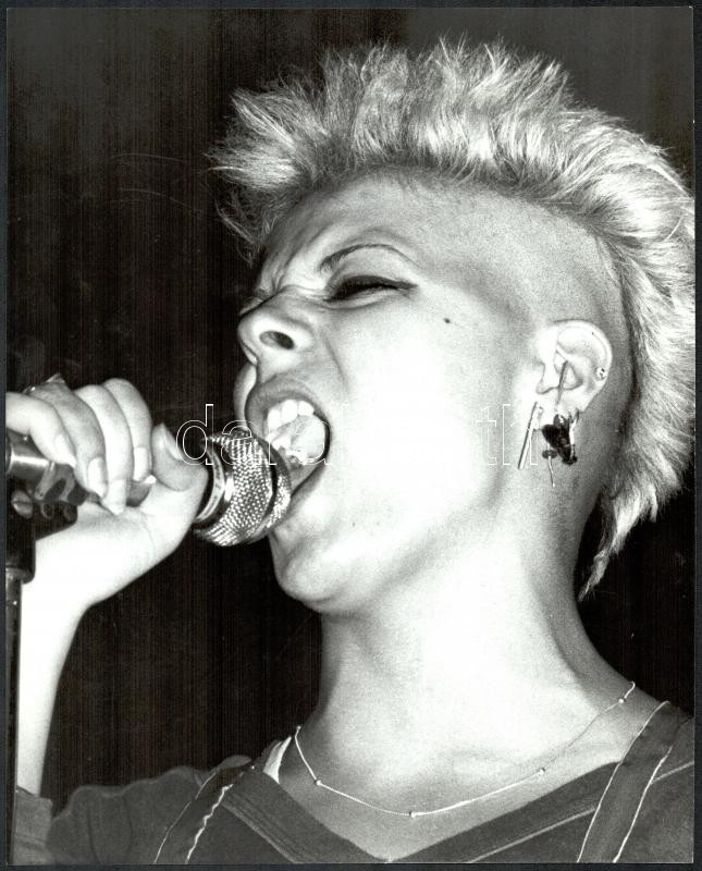 cca 1990 Botos Kriszta punk énekesnő (Auróra) fellépése a "Fekete Lyuk" alternatív zenei központban, Zetényi Zoltán fotóművész publikált fotója, hátoldalon pecséttel jelzett, szép állapotban, 30×24 cm