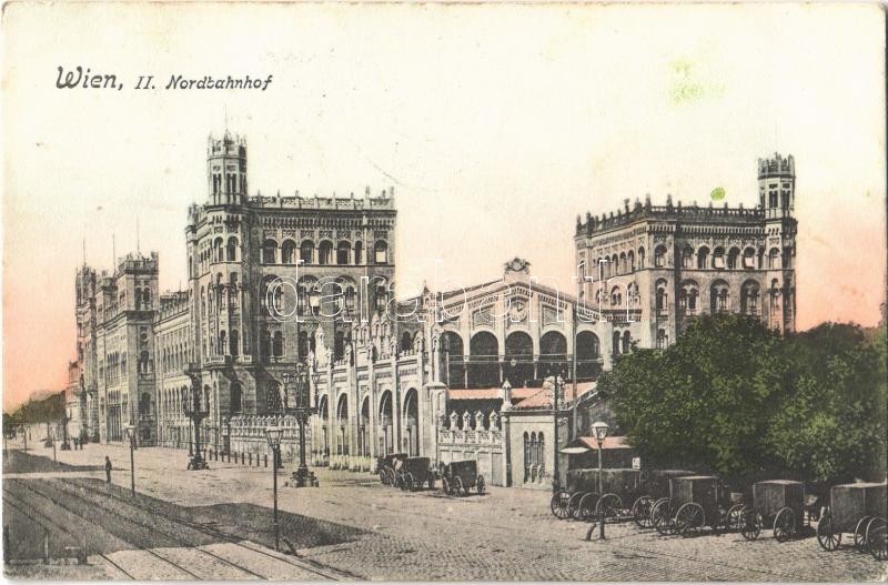 1907 Wien, Vienna, Bécs II. Nordbahnhof / North railway station (EK) https://www.darabanth.com/hu/361-Gyorsarveres/361.0/Kepeslapok/Ausztria~1500020/1907-Wien-Vienna-Becs-II-Nordbahnhof-North-railway-station-EK~II2083539