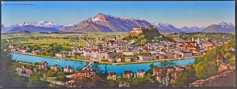 Leírás: Salzburg, Panorama von Kapuzinerberg. Photochromkarte No. 2665. Kunstanstalt Carl Jurischek - giant unfolded panoramacard (EK)