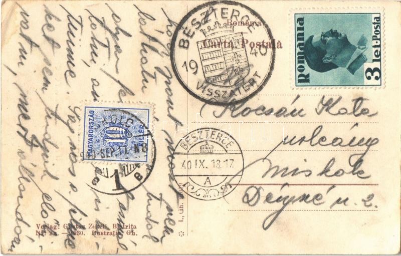 Leírás: 1940 Beszterce, Bistritz, Bistrita; Evangélikus leányiskola / girl school + "1940 Beszterce visszatért" So. Stpl (EK)
