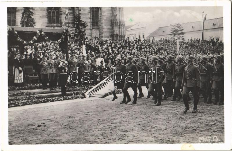 1940 Kolozsvár, Cluj; bevonulás, Horthy Miklós és Purgly Magdolna / entry of the Hungarian troops, Horthy and Purgly + "1940 Kolozsvár visszatért" So. Stpl