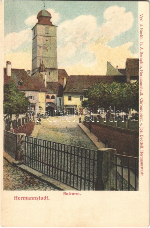 Nagyszeben, Hermannstadt, Sibiu; Várostorony. G.A. Seraphin v. Jos. Dr... https://www.darabanth.com/hu/361-Gyorsarveres/361.0/Kepeslapok/Erdely~1500007/Nagyszeben-Hermannstadt-Sibiu-Varostorony-GA-Seraphin-v-Jos-Drotleff-Ratturm-tower~II2081942