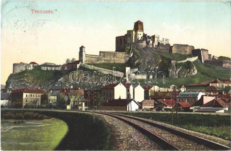 1908 Trencsén, Trencín; vár, vasútvonal. Gansel Lipót kiadása / Trenci... https://www.darabanth.com/hu/361-Gyorsarveres/361.0/Kepeslapok/Felvidek~1500008/1908-Trencsen-Trencin-var-vasutvonal-Gansel-Lipot-kiadasa-Trenciansky-hrad-castle-rai~II2083183