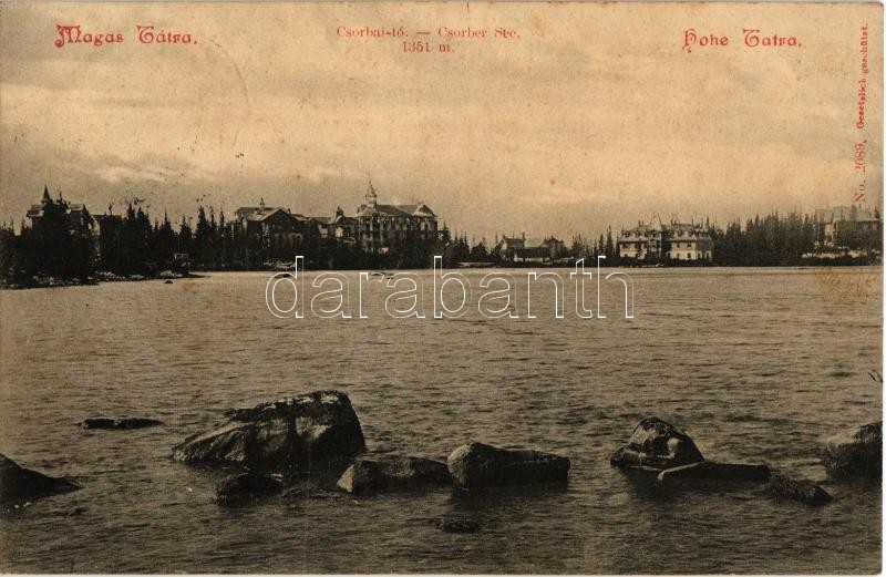 1910 Tátra, Tatry; Csorbai-tó / Csorber See / Strbské pleso, lake https://www.darabanth.com/hu/361-Gyorsarveres/361.0/Kepeslapok/Felvidek~1500008/1910-Tatra-Tatry-Csorbai-to-Csorber-See-Strbske-pleso-lake~II1955189