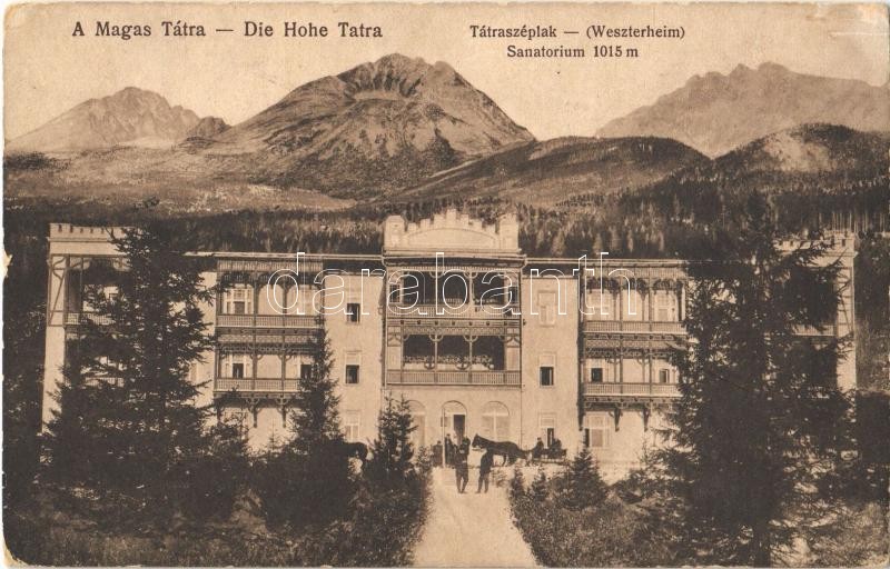 Leírás: 1918 Tátraszéplak, Tatranska Polianka, Westerheim (Magas-Tátra, Vysoké Tatry); szanatórium / sanatorium
