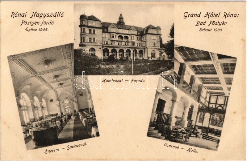 Pöstyén-fürdő, Kúpele Piestany; Rónai nagyszálló, homlokzat, étterem, ... https://www.darabanth.com/hu/361-Gyorsarveres/361.0/Kepeslapok/Felvidek~1500008/Postyen-furdo-Kupele-Piestany-Ronai-nagyszallo-homlokzat-etterem-csarnok-belso-gra~II1955077