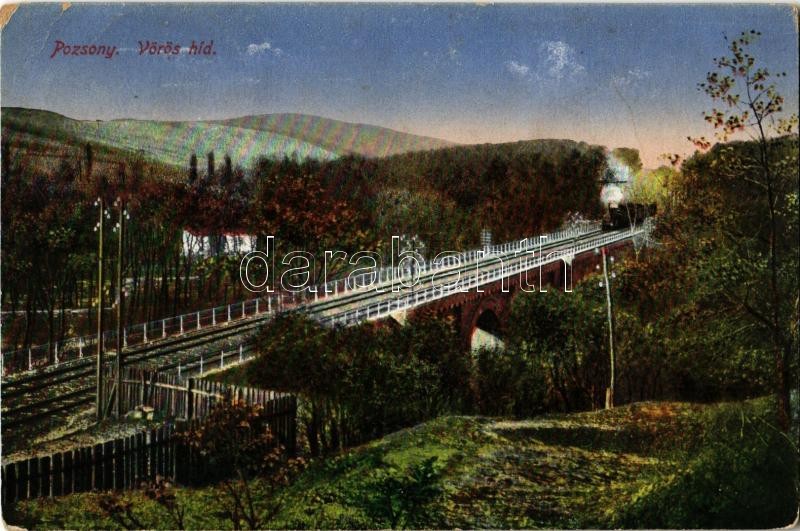 Pozsony, Pressburg, Bratislava; Vörös híd, gőzmozdony / railway bridge... https://www.darabanth.com/hu/361-Gyorsarveres/361.0/Kepeslapok/Felvidek~1500008/Pozsony-Pressburg-Bratislava-Voros-hid-gozmozdony-railway-bridge-with-locomotive-Rb~II1959506