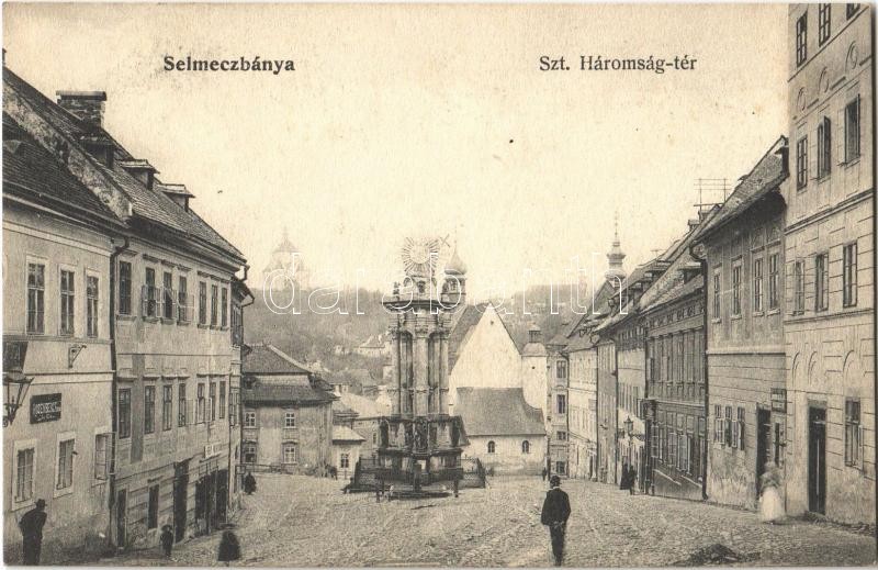 Selmecbánya, Schemnitz, Banská Stiavnica; Szentháromság tér és szobor,... https://www.darabanth.com/hu/361-Gyorsarveres/361.0/Kepeslapok/Felvidek~1500008/Selmecbanya-Schemnitz-Banska-Stiavnica-Szentharomsag-ter-es-szobor-Rosenberg-uzlete-Groh~II2079218