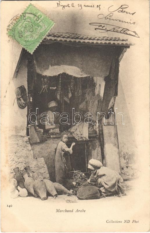 1905 Marchand Arabe / Arab merchant, Tunisian folklore. TCV card https://www.darabanth.com/hu/361-Gyorsarveres/361.0/Kepeslapok/Folklor~1500044/1905-Marchand-Arabe-Arab-merchant-Tunisian-folklore-TCV-card~II2080841