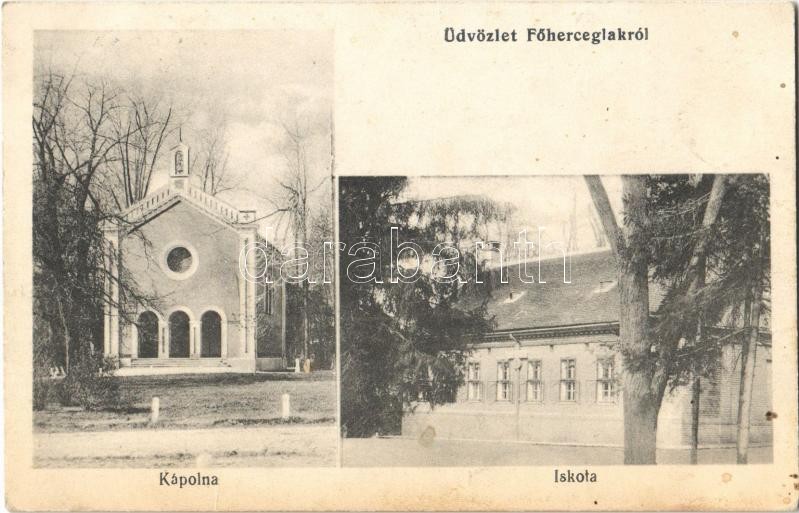 Leírás: 1918 Főherceglak, Főherczeglak, Knezevo (Baranyabán, Popovac, Ban); Kápolna, Iskola / chapel, school (fl)
