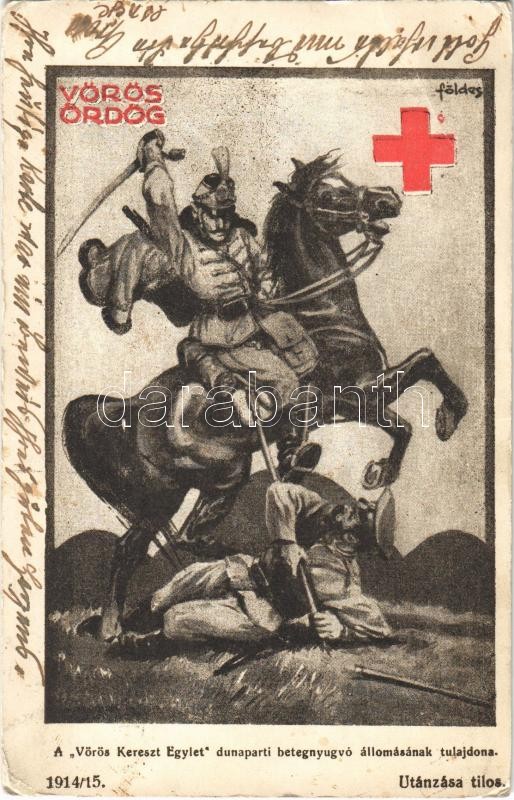 Leírás: 1914 Vörös ördög. A "Vöröskereszt Egylet" dunaparti betegnyugvó állomásának tulajdona / WWI Austro-Hungarian K.u.K. military, hussar, Red Cross propaganda s: Földes (EB)