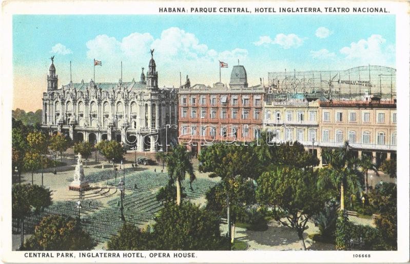 Leírás: 1931 Havana, Habana; Parque Central, Hotel Inglaterra, Teatro Nacional / Central Park, Inglaterra Hotel, Opera House