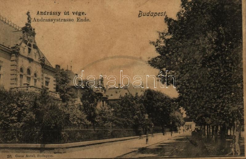 1900 Budapest VI. Andrássy út vége, villa. Ganz Antal 20. sz. https://www.darabanth.com/hu/361-Gyorsarveres/361.0/Kepeslapok/Magyarorszag~1500006/1900-Budapest-VI-Andrassy-ut-vege-villa-Ganz-Antal-20-sz~II2085890