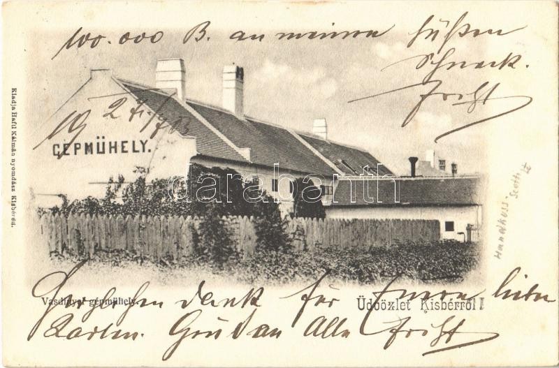 Leírás: 1903 Kisbér, Vasdinyer gépműhely. Haftl Kálmán kiadása