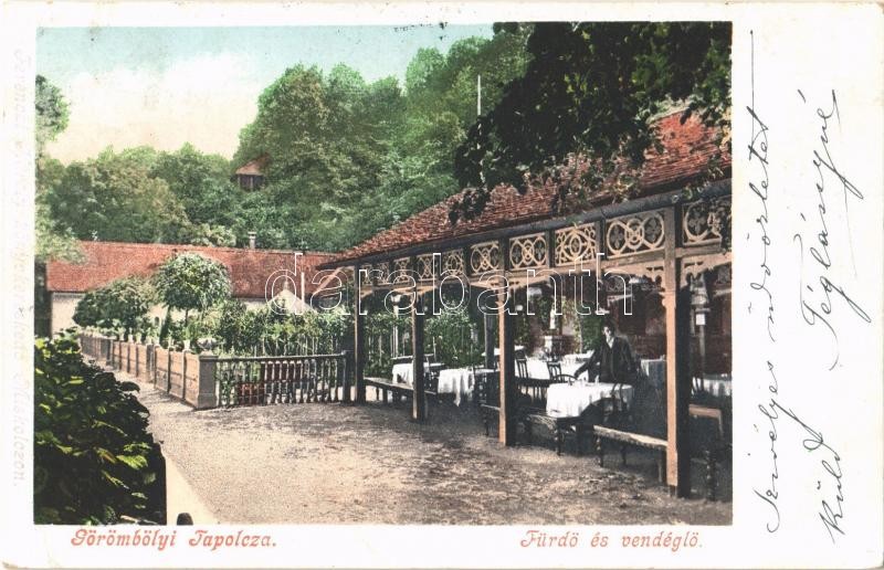 Leírás: 1904 Miskolctapolca, Görömbölytapolca, Görömbölyi-Tapolca, Tapolca (Miskolc); fürdő és vendéglő. Ferenczi Károly kiadása (EK)