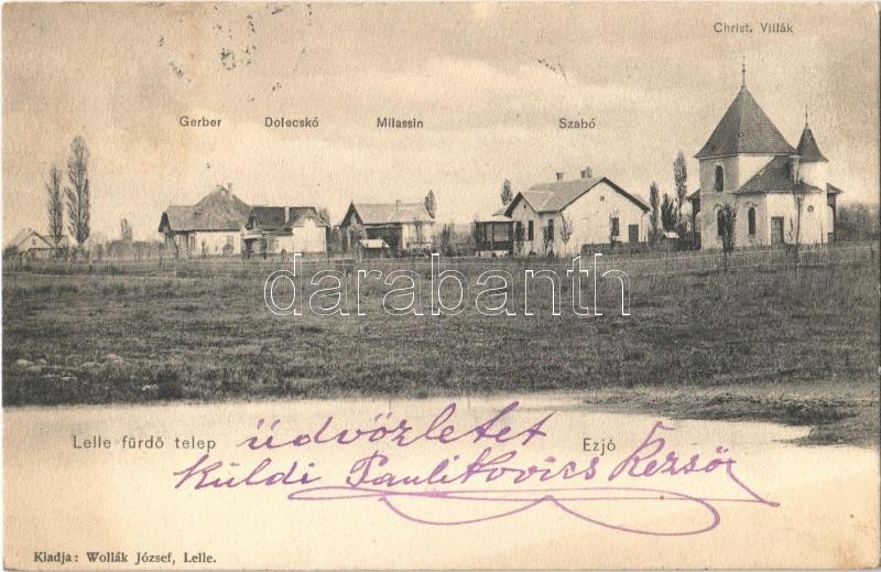 1905 Balatonlelle, Lelle fürdőtelep; Gerber, Dolecskó, Milassin, Szabó... https://www.darabanth.com/hu/361-Gyorsarveres/361.0/Kepeslapok/Magyarorszag~1500006/1905-Balatonlelle-Lelle-furdotelep-Gerber-Dolecsko-Milassin-Szabo-es-Christ-villak-Woll~II2079002