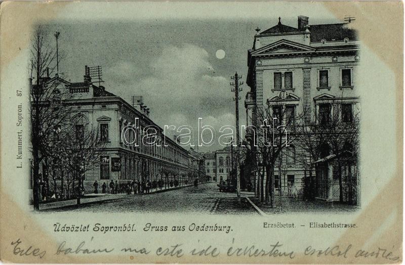 1905 Sopron, Erzsébet út, este https://www.darabanth.com/hu/361-Gyorsarveres/361.0/Kepeslapok/Magyarorszag~1500006/1905-Sopron-Erzsebet-ut-este~II1954449