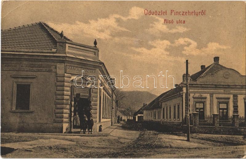 1907 Pincehely, Alsó utca, Mándl József üzlete. W. L. 348. (EK) https://www.darabanth.com/hu/361-Gyorsarveres/361.0/Kepeslapok/Magyarorszag~1500006/1907-Pincehely-Also-utca-Mandl-Jozsef-uzlete-W-L-348-EK~II2082956
