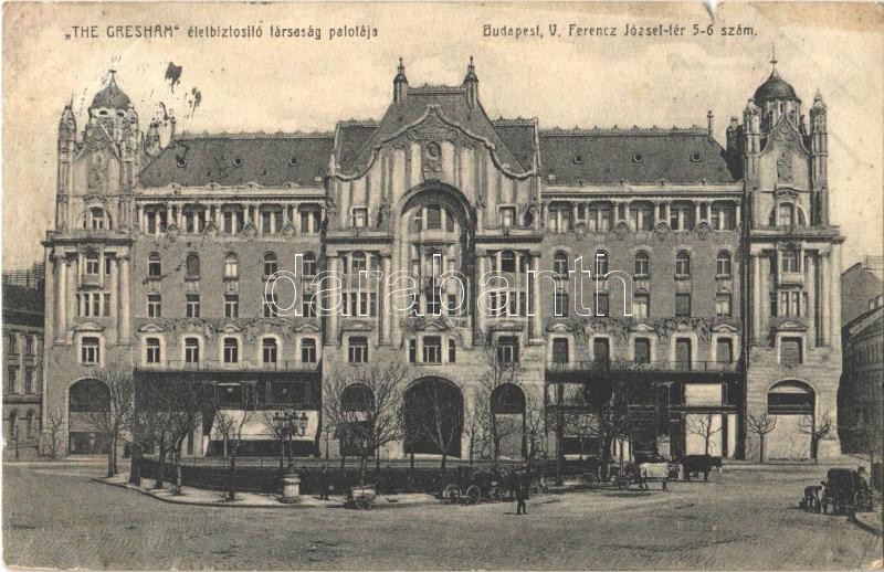 1908 Budapest V. Gresham Életbiztosító társaság palotája. Ferenc Józse... https://www.darabanth.com/hu/361-Gyorsarveres/361.0/Kepeslapok/Magyarorszag~1500006/1908-Budapest-V-Gresham-Eletbiztosito-tarsasag-palotaja-Ferenc-Jozsef-ter-5-6-kis-szakad~II2081804
