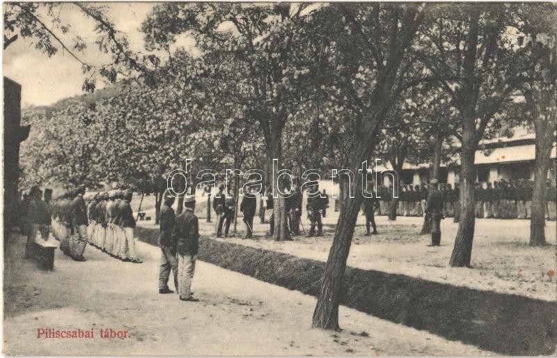 1908 Piliscsaba, tábor, katonák. Újhelyi Lajos kiadása https://www.darabanth.com/hu/361-Gyorsarveres/361.0/Kepeslapok/Magyarorszag~1500006/1908-Piliscsaba-tabor-katonak-Ujhelyi-Lajos-kiadasa~II2081689