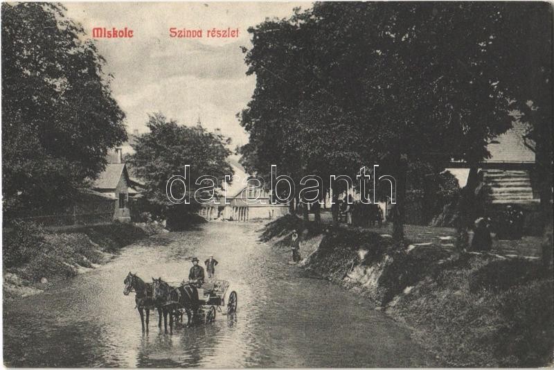 1910 Miskolc, Szinva patak részlete, lovaskocsi. Kiadja Fodor Zoltán https://www.darabanth.com/hu/361-Gyorsarveres/361.0/Kepeslapok/Magyarorszag~1500006/1910-Miskolc-Szinva-patak-reszlete-lovaskocsi-Kiadja-Fodor-Zoltan~II2079077