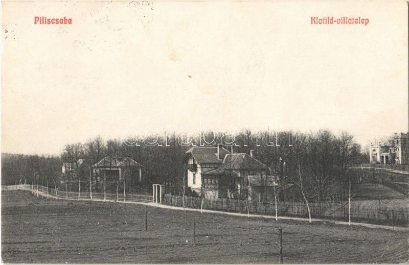 1910 Piliscsaba, Klotild villatelep (EK) https://www.darabanth.com/hu/361-Gyorsarveres/361.0/Kepeslapok/Magyarorszag~1500006/1910-Piliscsaba-Klotild-villatelep-EK~II2081679