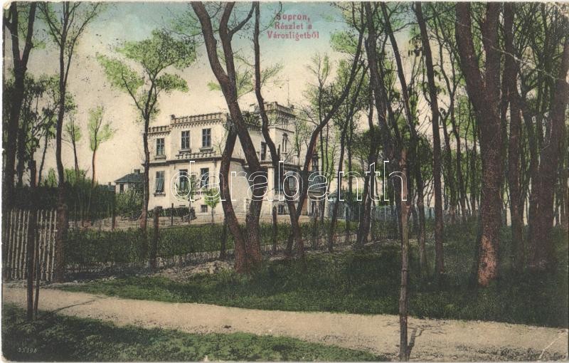 1914 Sopron, Részlet a Városligetből, villa. Piri Dániel 609. (EB) https://www.darabanth.com/hu/361-Gyorsarveres/361.0/Kepeslapok/Magyarorszag~1500006/1914-Sopron-Reszlet-a-Varosligetbol-villa-Piri-Daniel-609-EB~II2079762