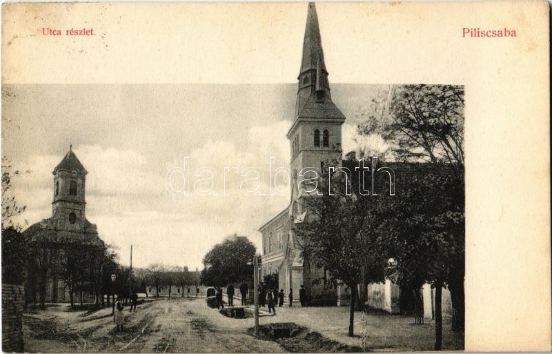 Leírás: 1915 Piliscsaba, utca, templomok. Gedeon Katalin kiadása