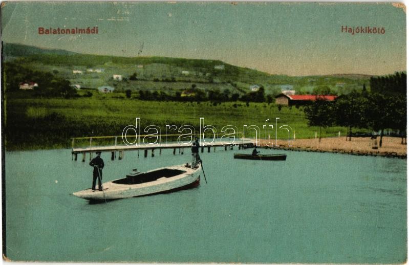 1926 Balatonalmádi, hajókikötő, motorcsónak matrózokkal (EK) https://www.darabanth.com/hu/361-Gyorsarveres/361.0/Kepeslapok/Magyarorszag~1500006/1926-Balatonalmadi-hajokikoto-motorcsonak-matrozokkal-EK~II1961859