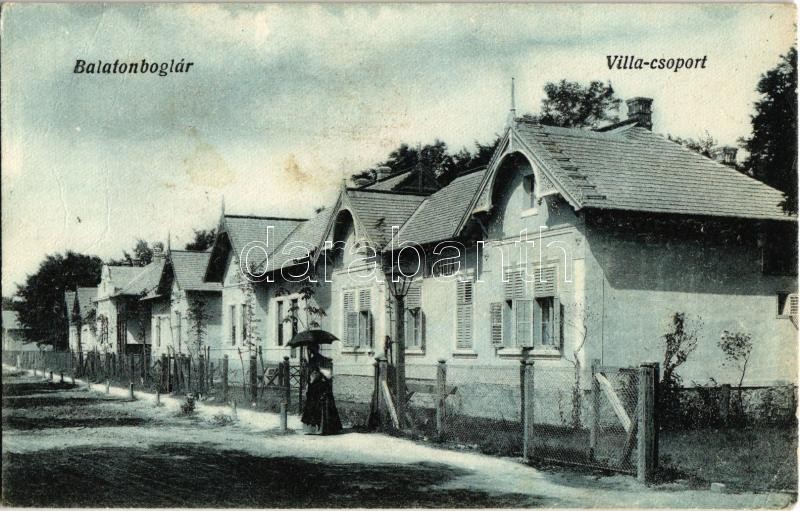 Balatonboglár, Villa csoport, hölgy napernyővel a Lukács villa előtt. ... https://www.darabanth.com/hu/361-Gyorsarveres/361.0/Kepeslapok/Magyarorszag~1500006/Balatonboglar-Villa-csoport-holgy-napernyovel-a-Lukacs-villa-elott-Saly-Kalman-kiadasa-E~II1961935