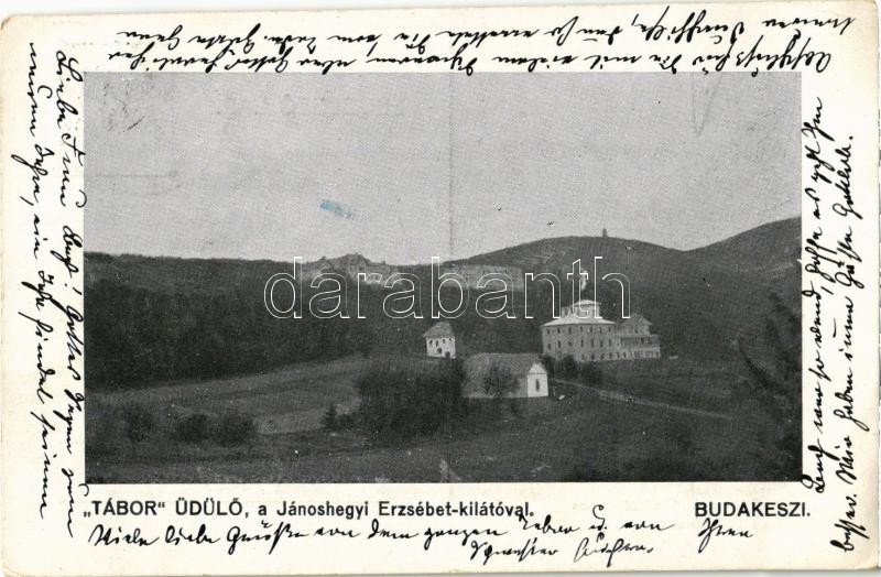 Leírás: Budakeszi, "Tábor" üdülő a Jánoshegyi Erzsébet kilátóval. Tábor üdülő és lábbadozó otthon kiadása (EK)