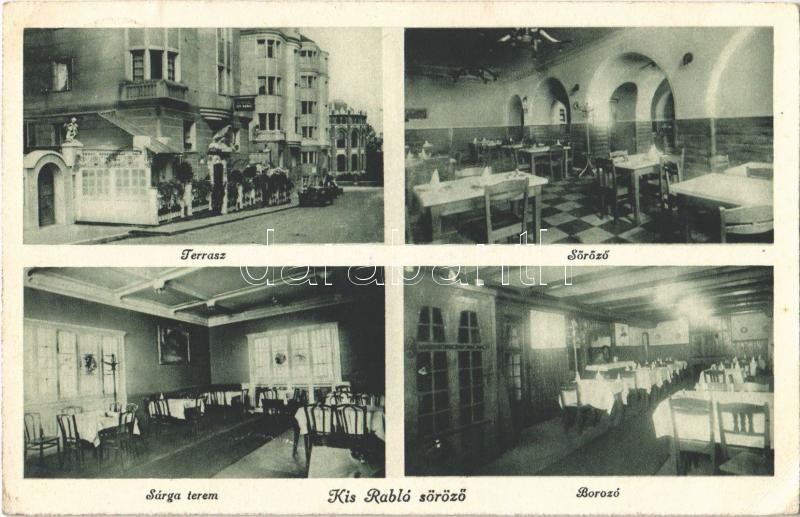 Leírás: Budapest XI. Kis Rabló söröző, terasz, borozó, Sárga terem, belső. Zenta utca 3. (EK)
