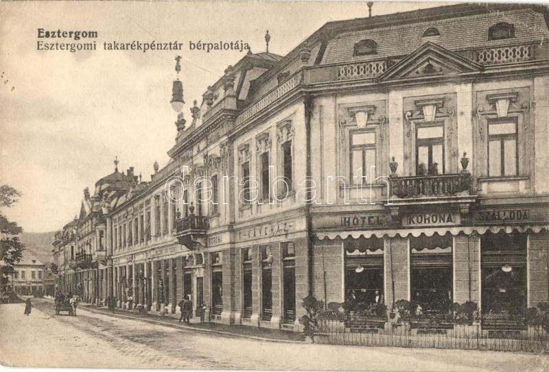 Esztergom, Esztergomi Takarékpénztár bérpalotája, Hotel Korona szállod... https://www.darabanth.com/hu/361-Gyorsarveres/361.0/Kepeslapok/Magyarorszag~1500006/Esztergom-Esztergomi-Takarekpenztar-berpalotaja-Hotel-Korona-szalloda-es-kavehaz-sorcs~II1903919