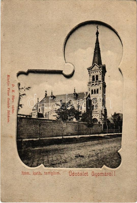 Gyoma, Római katolikus templom. Kiadja Véver Oszkár. Art Nouveau https://www.darabanth.com/hu/361-Gyorsarveres/361.0/Kepeslapok/Magyarorszag~1500006/Gyoma-Romai-katolikus-templom-Kiadja-Vever-Oszkar-Art-Nouveau~II1956257