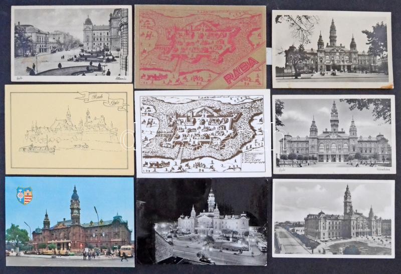 Leírás: Győr - 77 db főleg régi képeslap + 4 db fotó + 1 meghívó - 77 mostly pre-1945 postcards + 4 photos + 1 invitation card