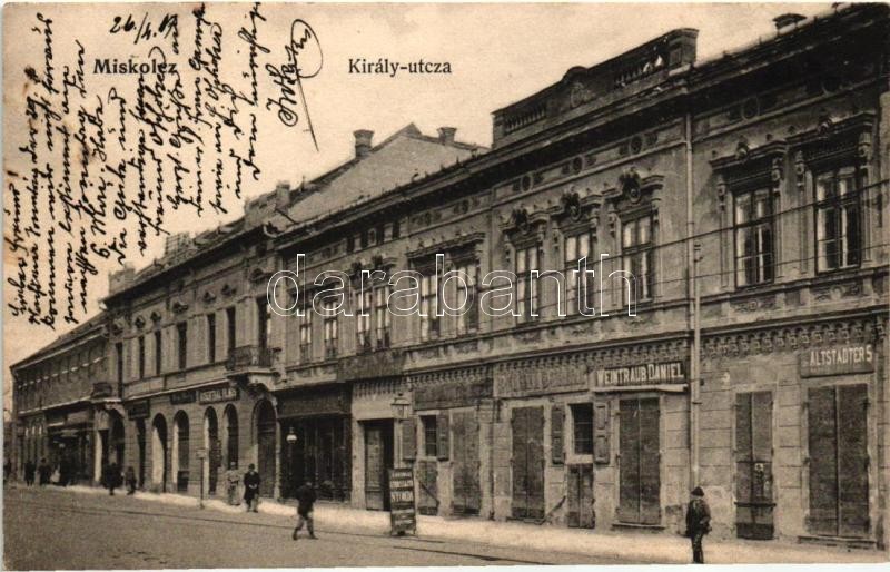 Miskolc, Király utca, Altstädter, Weintraub Dániel, Rosenthal Vilmos ü... https://www.darabanth.com/hu/361-Gyorsarveres/361.0/Kepeslapok/Magyarorszag~1500006/Miskolc-Kiraly-utca-Altstadter-Weintraub-Daniel-Rosenthal-Vilmos-uzletei-nyomda~II1633128