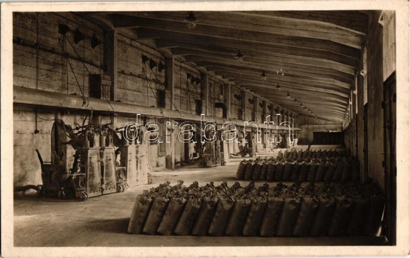 Leírás: Tatabánya, Magyar Általános Kőszénbánya Rt. tatai bányászata, cement csomagolás, belső cementes zsákokkal